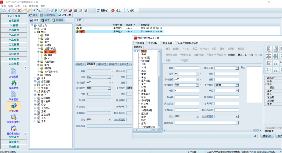 PDM系统自定义物料属性