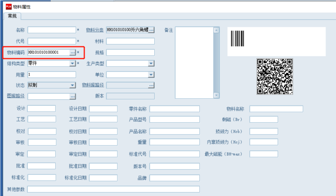 第一种是用户可以通过软件接口将当前零件按照对应分类生成对应编码,在零件生成物料时,可以将编码写入到生成的对应物料中,使物料拥有符合规则的编码。
