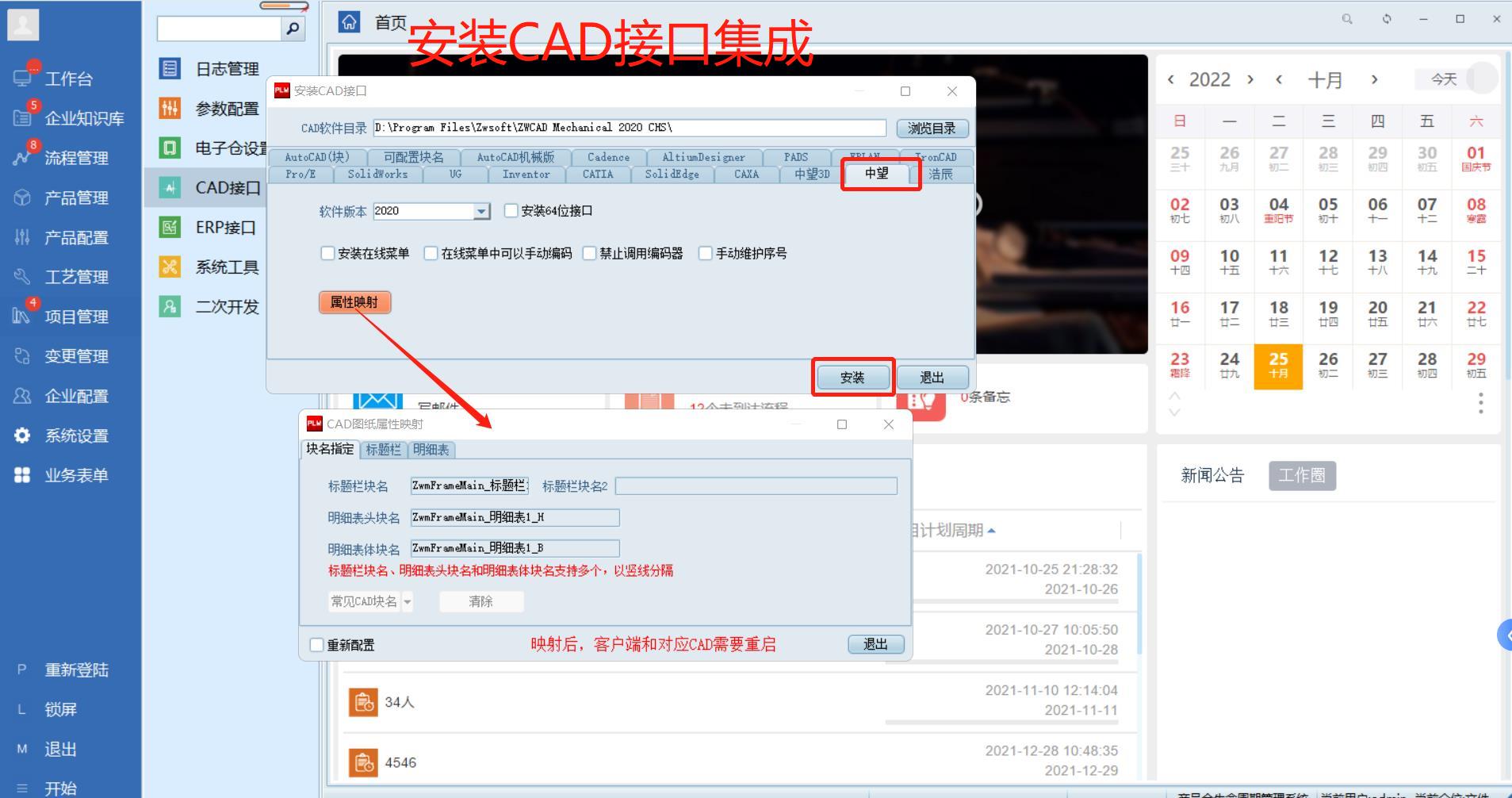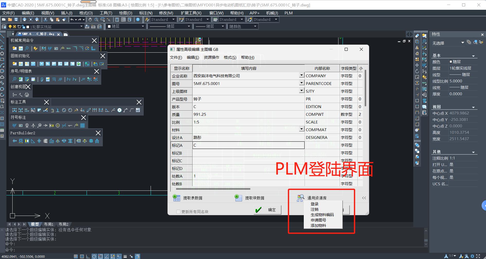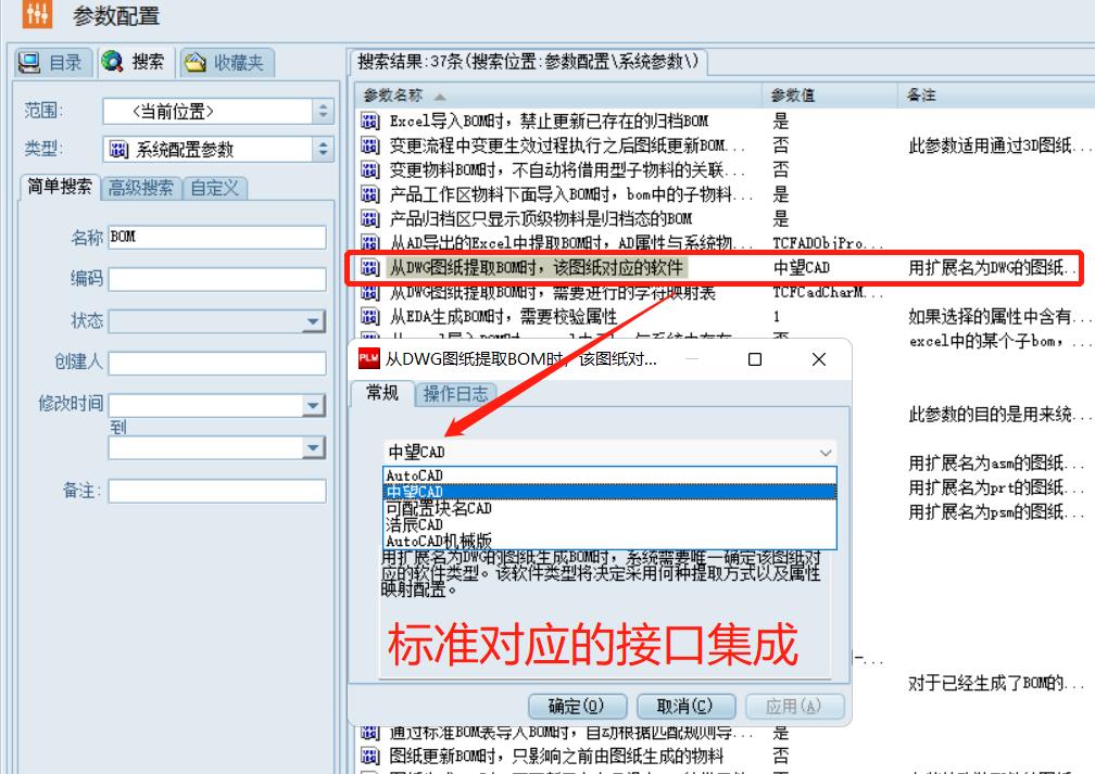 7.2 接口参数编辑,PLM系统在中望CAD的登录界面