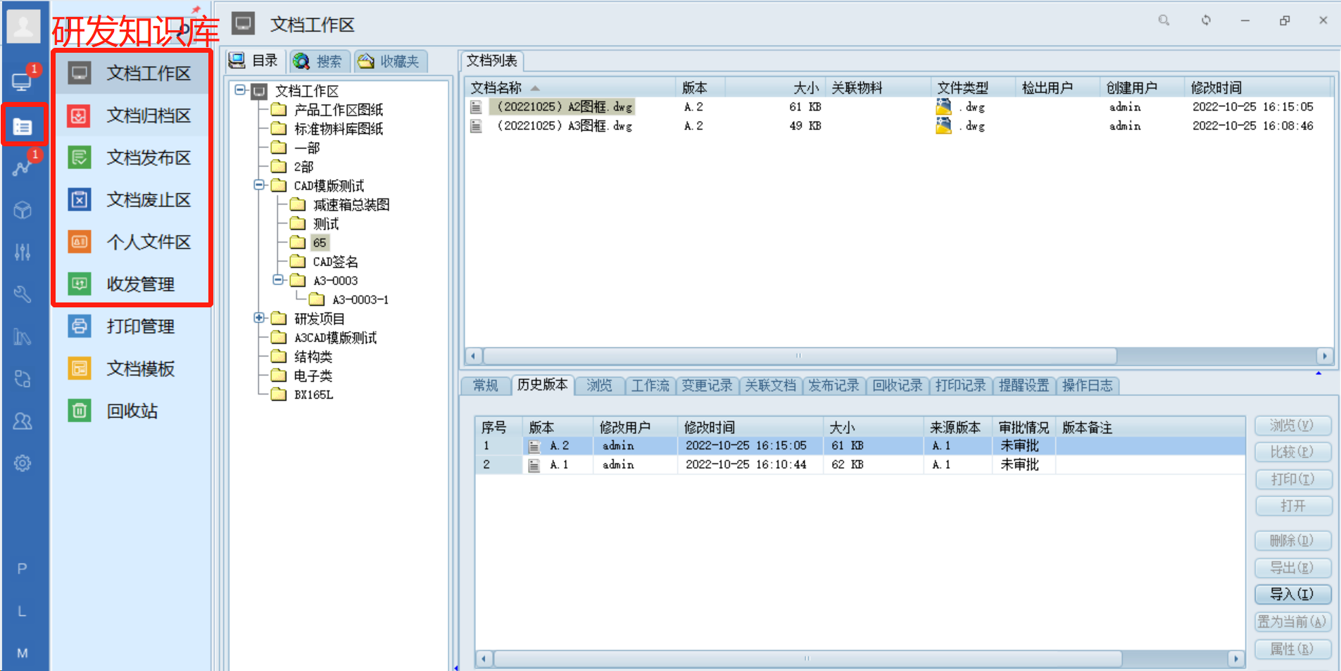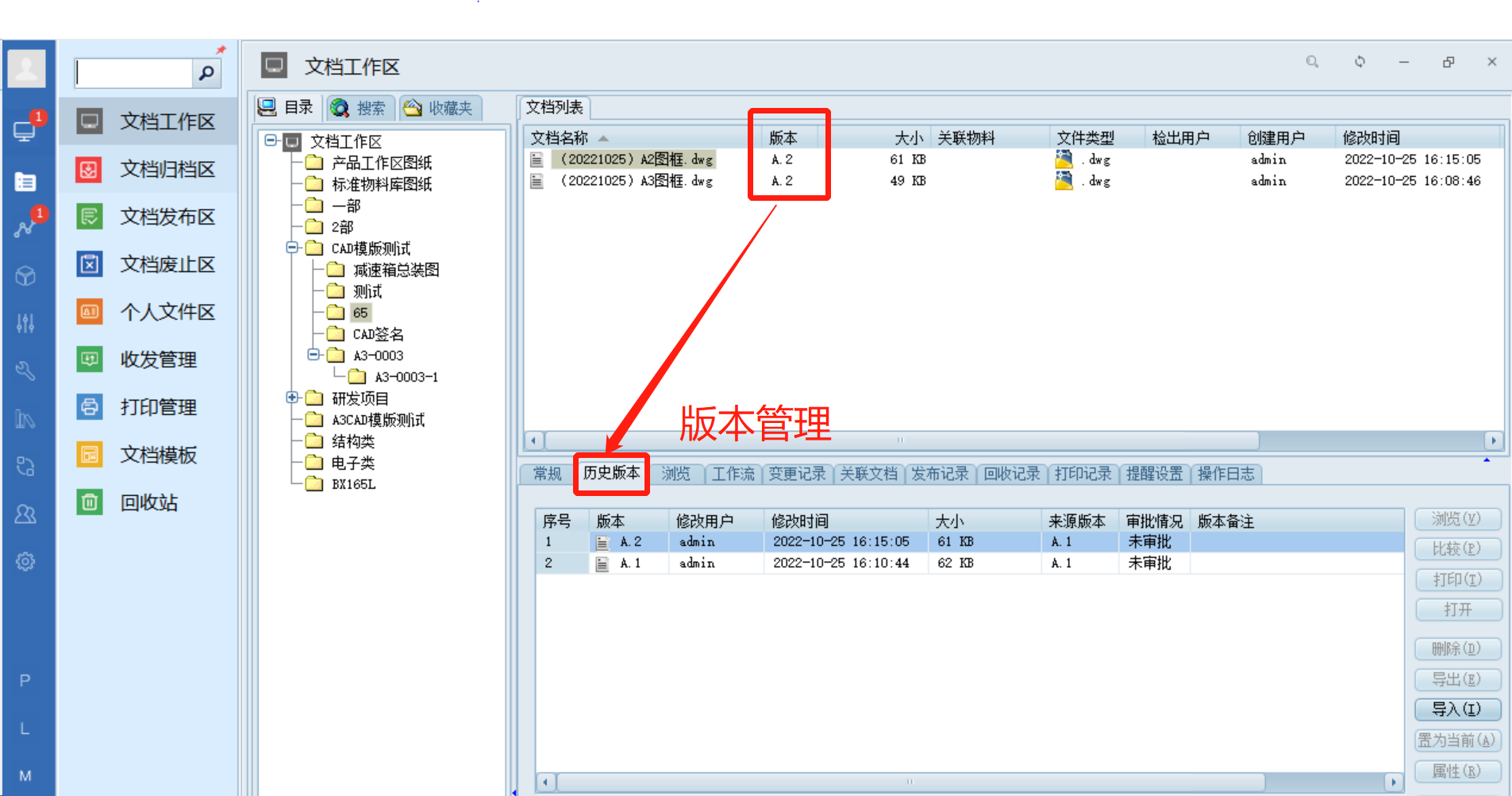 2.1提供文档版本管理,用于控制文档的有效性及跟踪文档的变化历史,保证文档的正确性和一致性。根据检入、检出、修订操作,系统将自动更新版本号,支持大版本和小版本,大的修改可以升级版本,小的改动可以升级版次。