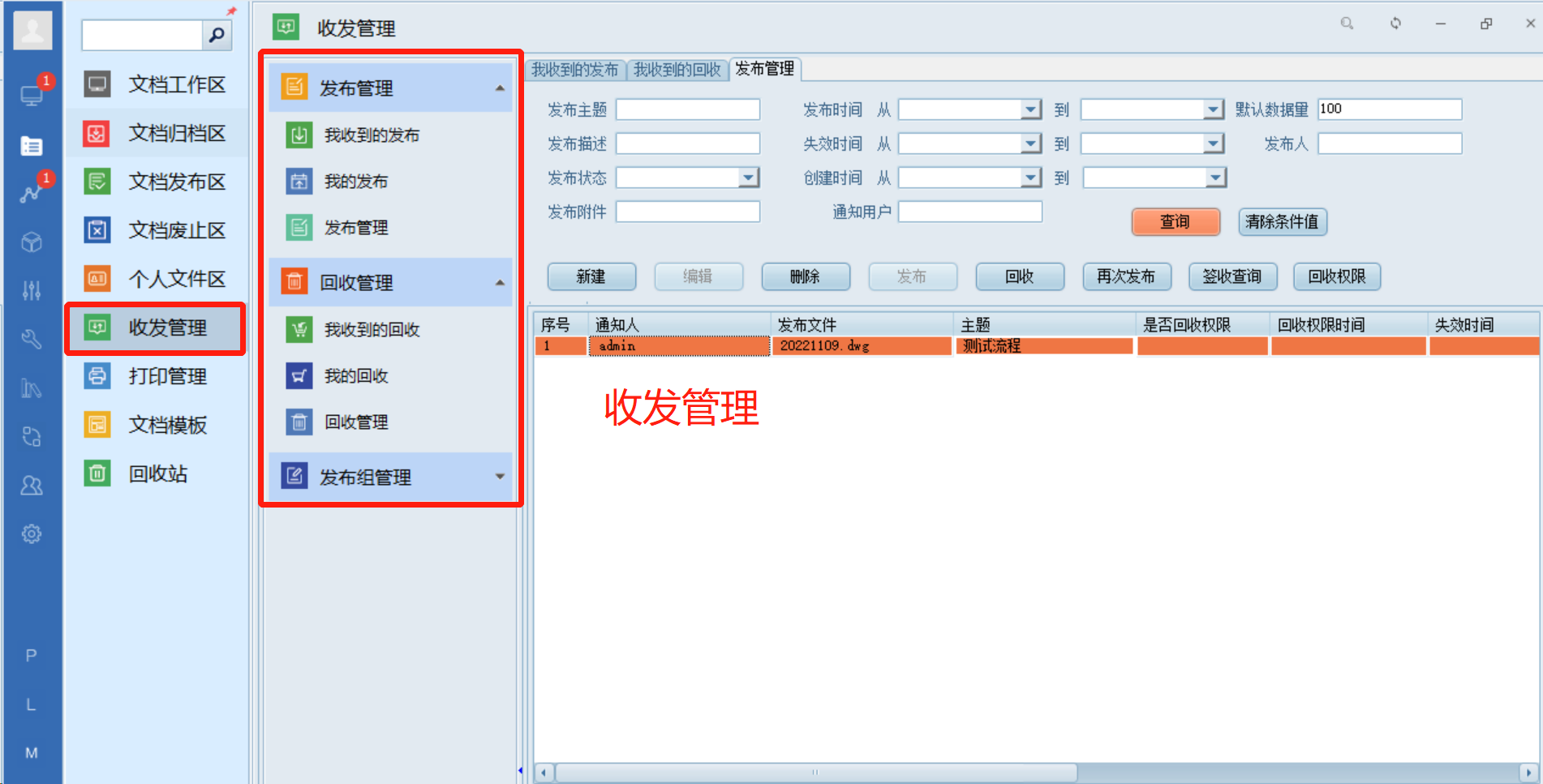 3.1通过发布回收图纸实现企业系统管理,快速建立起企业无纸化流转体系,可集中存放所有发布和回收的记录,快速准确查询并管理所有签收或未签收的发布和回收记录。