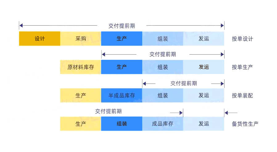 企业业务模式的特点在此过程中就显得特别重要了,常见的几种生产模式:ETO(按订单设计 Engineer to Order)、ATO(按订单装配 Assemble to Order)、MTO(按订单生产 Make to Order)、MTS(按库存生产)的管理需求差别很大。