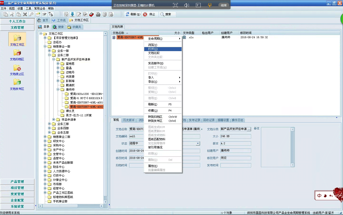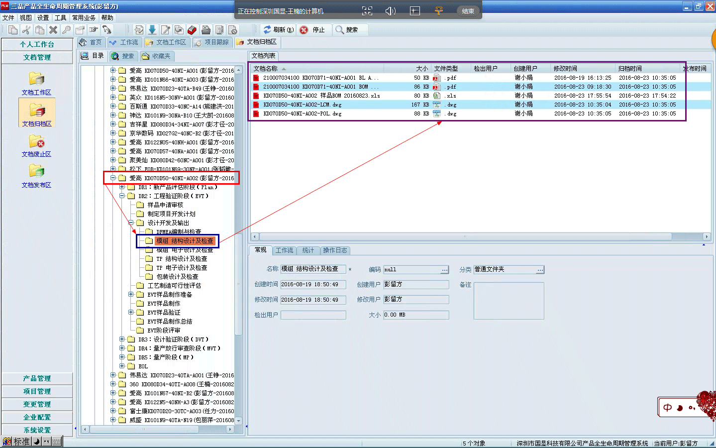 通过PLM系统协助国显科技建立统一的图文档资料协同管理平台,搭建了各部门文件夹目录框架,各部门规范各类文档资料,实现图文档数据集中、规范管理,也方便查找与使用。